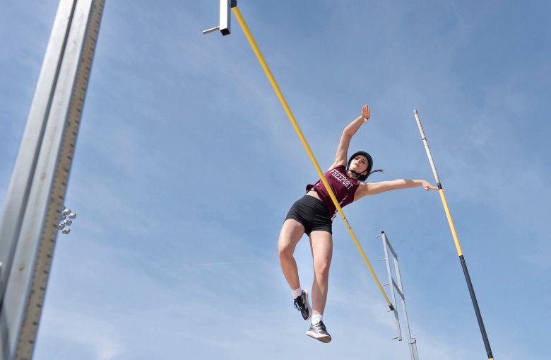 “You need strength and you need (good) form,” said Freeport freshman Briella Boudreau. “You need the muscle to be able to bend the pole and lift yourself up. The more you do it, the more you’re used to it and your muscles aren’t feeling the strain of it. But there is a lot of core (strength) because you’re bending (your legs) inward and upwards.”
