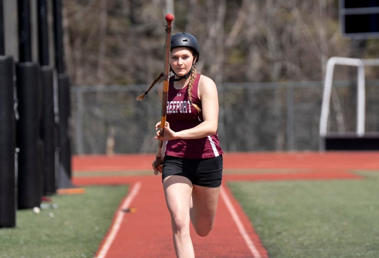 Freeport junior Tizita Rackmales is brand new to the event. Her boyfriend — Holden — convinced her to give it a try. In her debut at the Bob Morse Invitational last week at Yarmouth High, she cleared 8 feet. Rackmales is a former gymnast, and credits the strength gained in her previous sport to her early success in the pole vault.