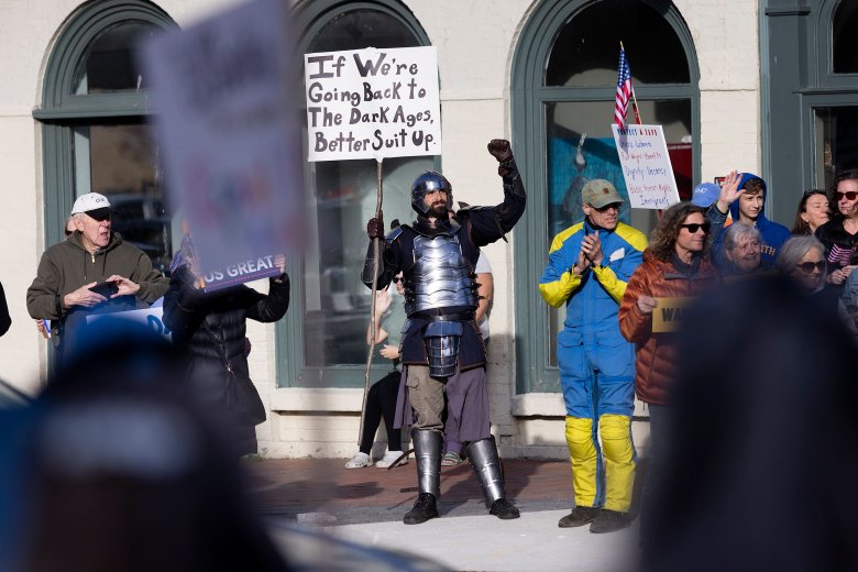 Other signs in the crowd reflected a wide range of issues, from billionaire Elon Musk’s role in the White House to Congress’ inaction against the Trump administration, a rise in bigotry and hostility toward marginalized groups, the ongoing war in Gaza, government job and research funding cuts, and the importance of adhering to the rule of law.