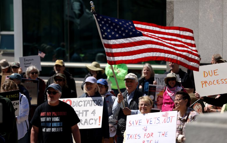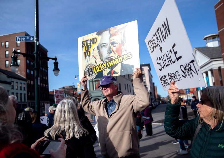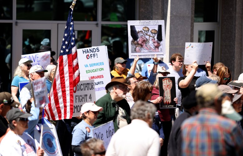 Other signs in the crowd reflected a wide range of issues, from billionaire Elon Musk’s role in the White House to Congress’ inaction against the Trump administration, a rise in bigotry and hostility toward marginalized groups, the ongoing war in Gaza, government job and research funding cuts, and the importance of adhering to the rule of law.