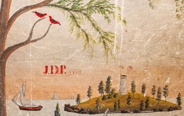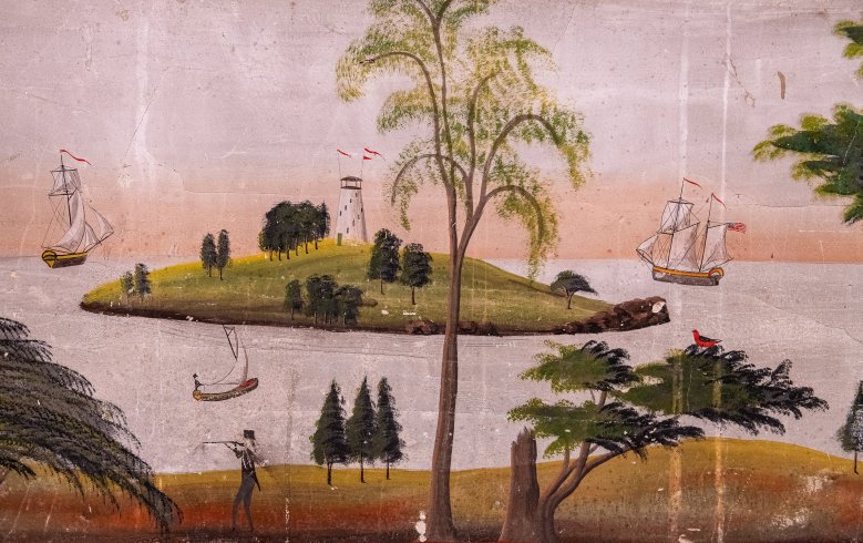 Ottinger, who has been dismantling and assembling wall murals for 43 years, oversaw the murals’ installation in the Graham Center. “These are local scenes and they’re local artists’ interpretations,” he said, pointing out that the paintings are not derived from European precedents. “It really communicates a lot about what the people in the 1830s and ’40s were thinking and their comfort with their world.”