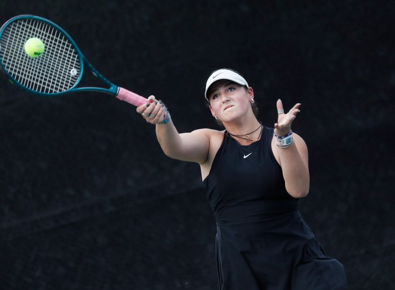 But the pair did have one humorous moment during their victory. As Day, playing near the service line, hit a return, she accidentally sent the ball flying toward McNaughton, whose eyes were focused on their opponents on the other side of the court. Day’s return hit McNaughton in the back.
