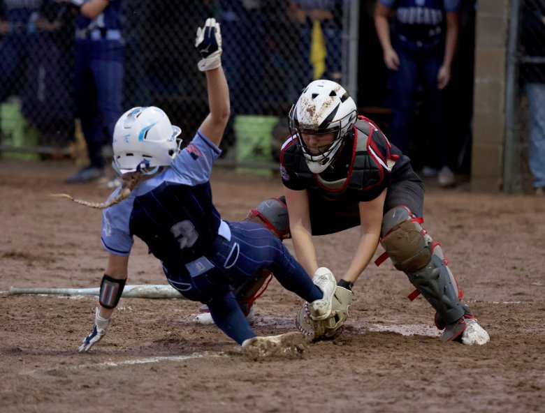 Few have come tougher. A steady rain that began before the game and lasted into the seventh inning made base running and fielding an adventure, and an early 2-0 lead became a 3-2 deficit in the fifth inning when Dirigo’s Nikole Turnbull scored on a wild pitch and Lana Waite came home on Abby Luczynski’s single.
