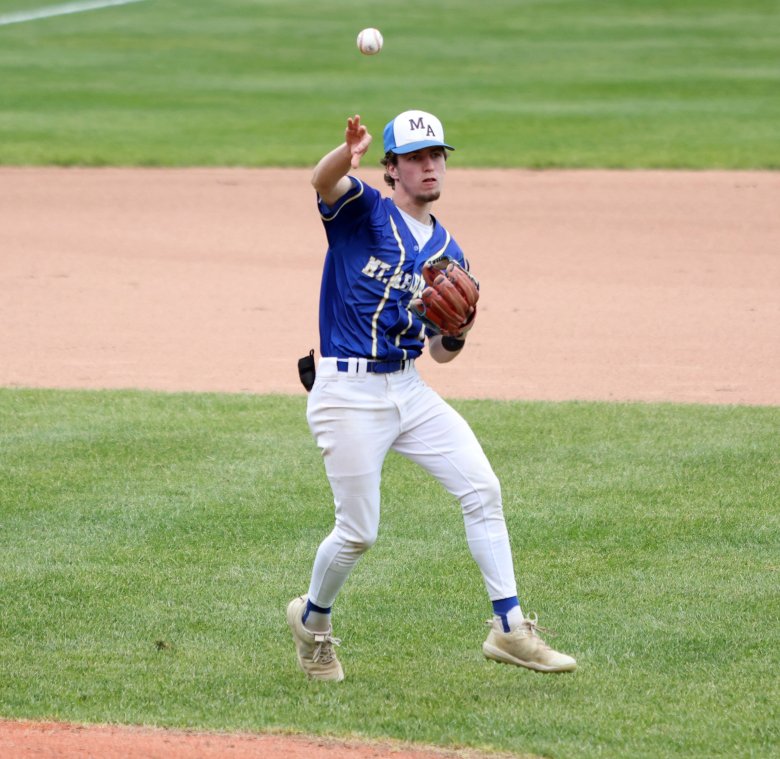 • Mt. Abram tied it in the fourth on an RBI double by Walker Wolfe — Wolfe’s second RBI hit in a 3-for-3 day. But that lead was short-lived when Monmouth put three runs on the board in the top of the fifth in a rally that again featured a hit-batter, a walk, and an RBI single by Harmon. Dube hit a second batter with the bases loaded and Sam Schultz — the Mustangs’ lone senior starter — drove in the third with a sharp single to left.