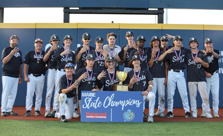 St. Dom’s ran out to a 9-1 lead at the University of Maine’s Mahaney Diamond and withstood a late Bangor Christian rally. The win secured a fourth consecutive state title for the Saints, who close out the program’s history with nine total championships, all in the last 20 years.