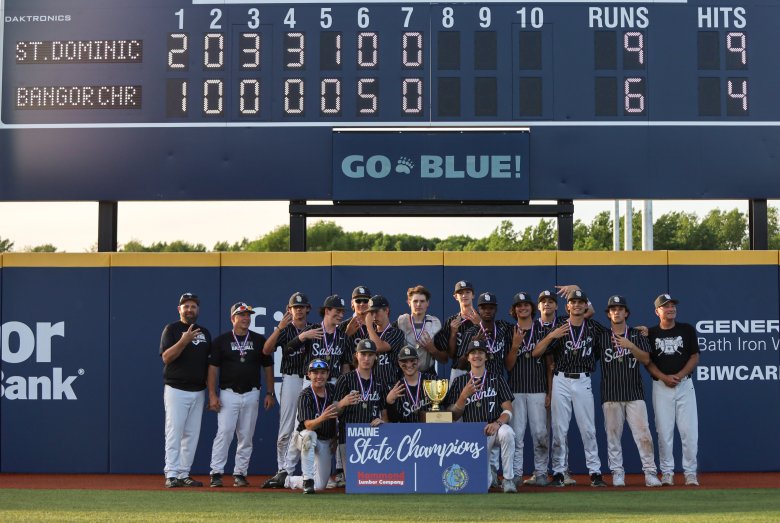 One girl, a current student, had tears in her eyes; another woman, an elderly alum, was fighting to hold them back. Even the St. Dom’s baseball team’s celebration after the final out of their 9-6 win Saturday over Bangor Christian in the Class D state final had been rather constrained as far as championship celebrations go.