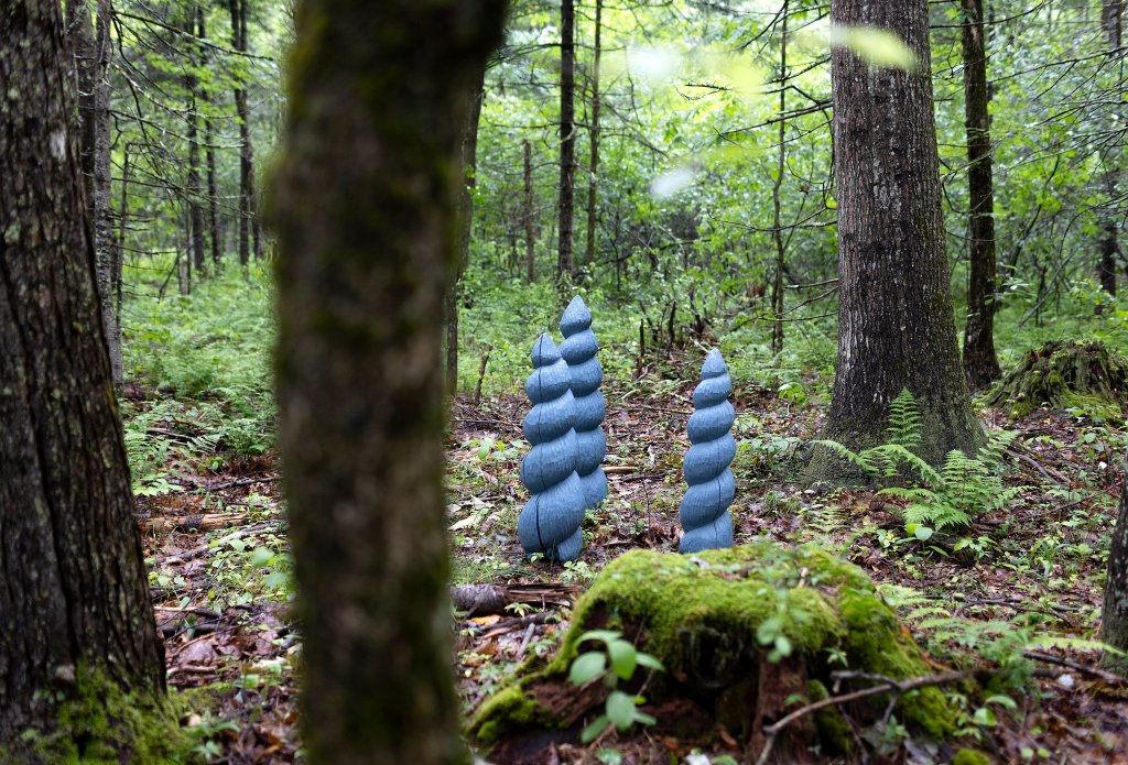 Timpson reached out to a friend at the Maine College of Art and Design to talk about a sculpture exhibition. He eventually connected with Reiman, who proposed an installation that would change every two years. Reiman visited the land in multiple seasons as he planned this show — the first time he has curated an exhibition outside. He considered exactly how the light would hit this piece or that one, where the winding path would allow a visitor to see a piece from multiple angles.