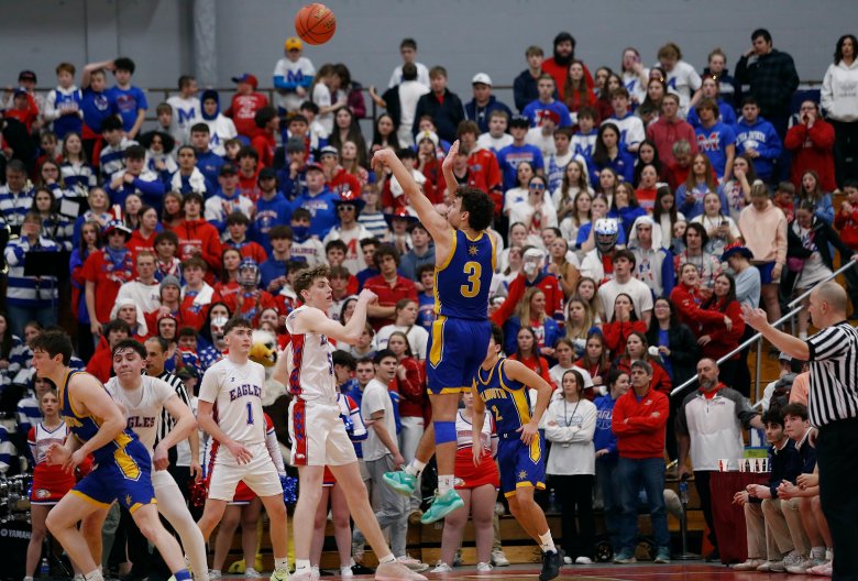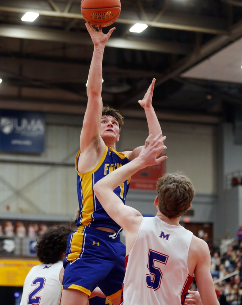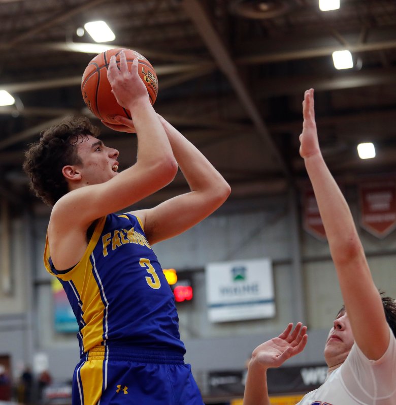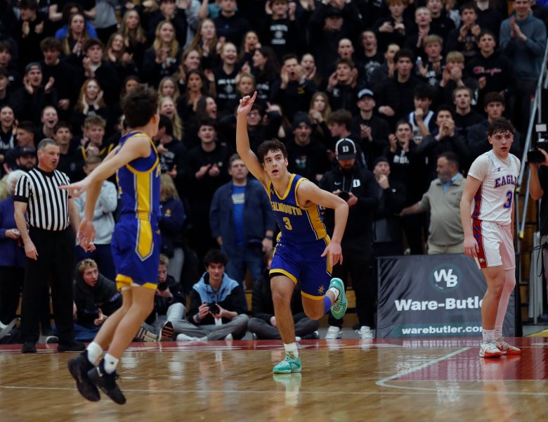 Yet Falmouth hit back with a layup from Jaxon Cameron and a 3-pointer from Mann to pull back within one possession with 1:25 left. Then, with Messalonskee up 54-52, Mann made an off-balance pass through two Eagles defenders that found David Graiver, who laid it in to tie the game 31 seconds left.