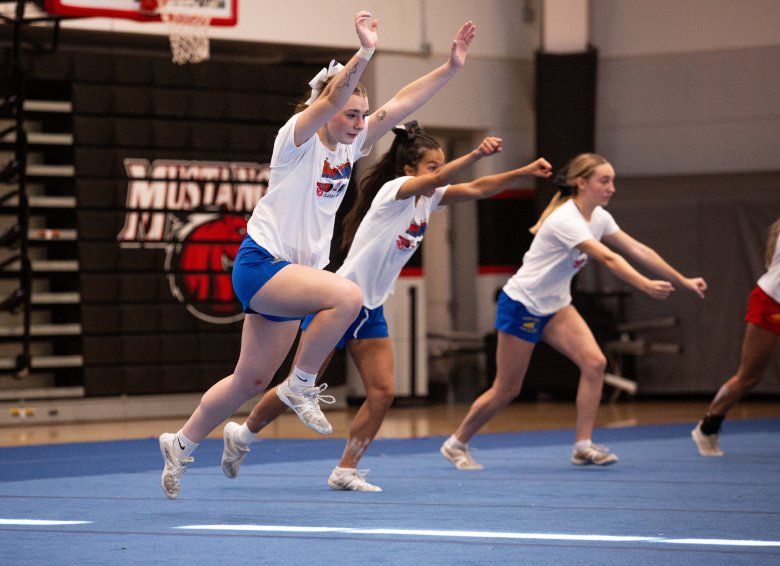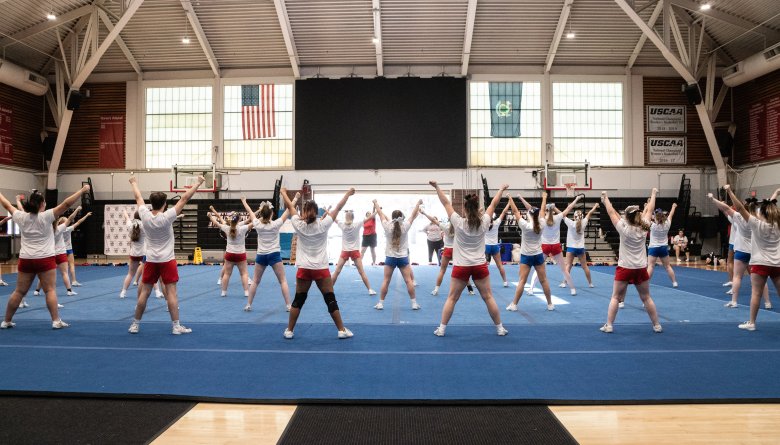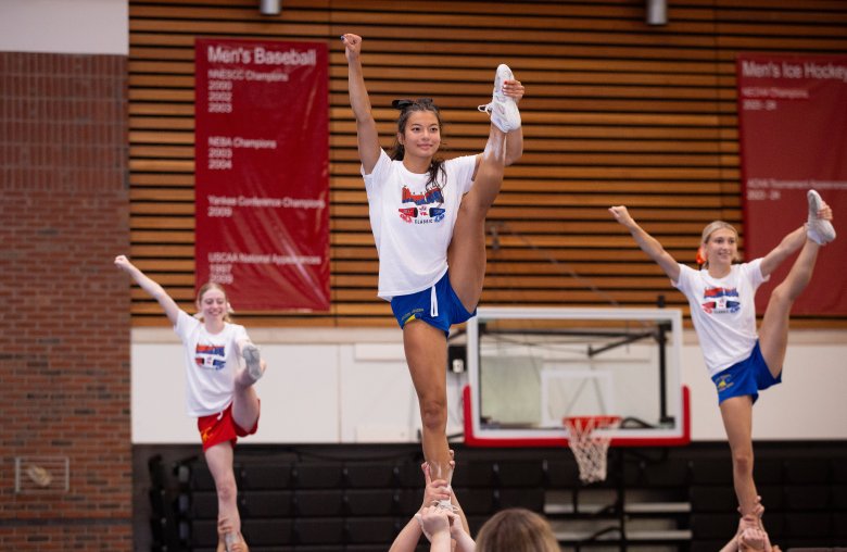 Cheerleaders from across the state are living in dorms at Central Maine Community College in Auburn this week to learn new stunts and routines for Saturday’s Lobster Bowl.