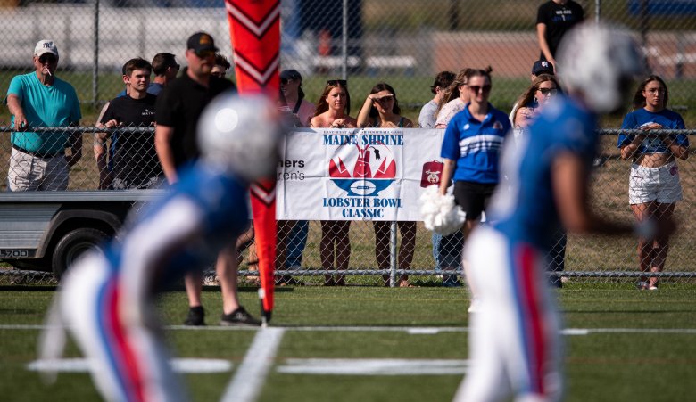 The West defense was led by Wes Piper, from eight-man Large School champion Greely. Piper stopped two third-quarter East drives that had reached West territory with a fumble recovery and then a perfectly timed interception when he undercut an out route. Overall, the West defense held the East to 172 yards over the 60-minute game. Piper and Tavian Lauture (5 for 5 on PATs) of Deering led a secondary that stood up to the big East receivers and worked in tandem with a pressure-producing defensive line to frustrate East quarterbacks Louis Thurston of Portland (7 of 22, 60 yards) and Caleb Kennedy of MCI (5 of 13, 72 yards).
