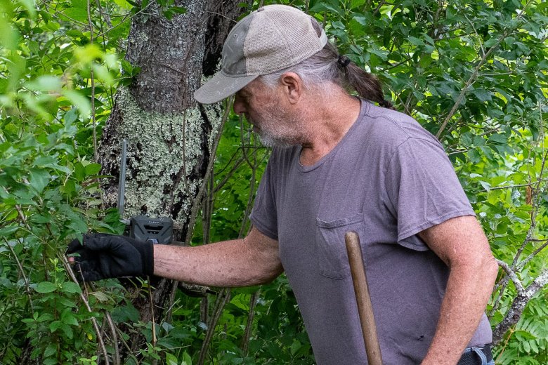 In the photos, the men are seen adding branches, mud and rocks to the outlet from a boat that has no visible registration, which is a legal requirement in Maine. What appears to be the same boat was later tracked to a private dock on the pond and the driver of the boat was recorded operating another boat docked at the same location.