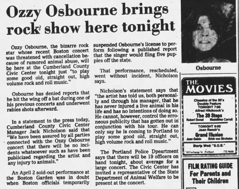 A 1981 concert review in the Press Herald, which misspelled Osbourne’s first name, lamented that the singer “has failed to realize that Black Sabbath folded mainly because only 15-year-olds are still taken in by that sort of pretentiousness.”