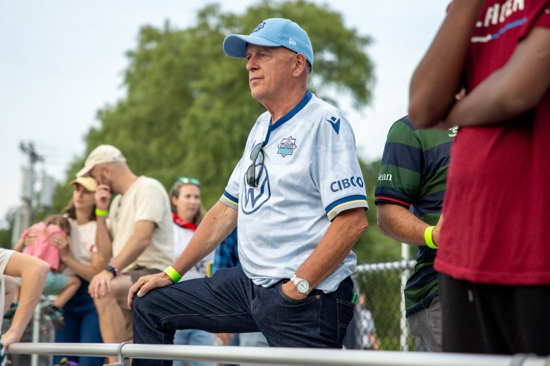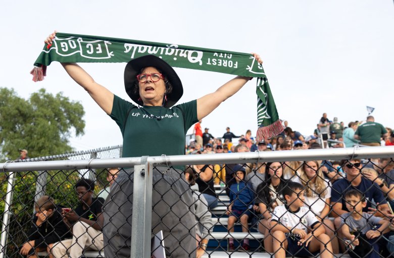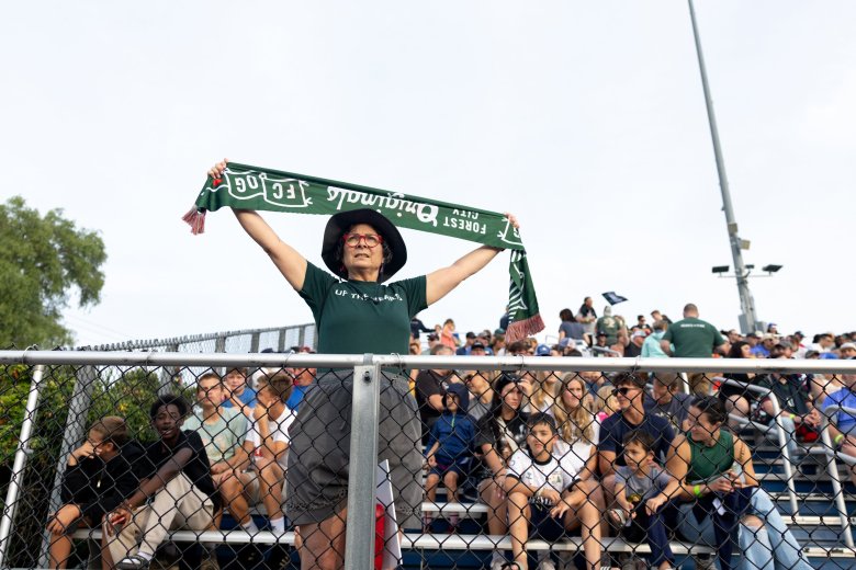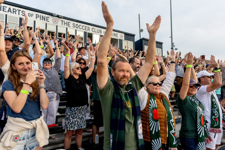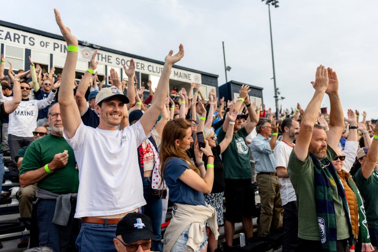 From his spot in the last row of the Fitzpatrick Stadium stands, Fegan swiped his right arm toward the pitch, where the Hearts of Pine and the Wanderers were just minutes into their game.