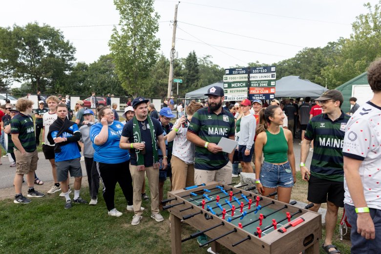 The game, announced two weeks ago, was the first international friendly in the Hearts of Pine’s young life. For Brian Willett of Brunswick, who holds dual U.S.-Canadian citizenship, this match was a very big deal. Willett plays snare drum in the Valentine Band, members of the Dirigo Union supporters club that keeps the beat nonstop throughout every Hearts of Pine home game.