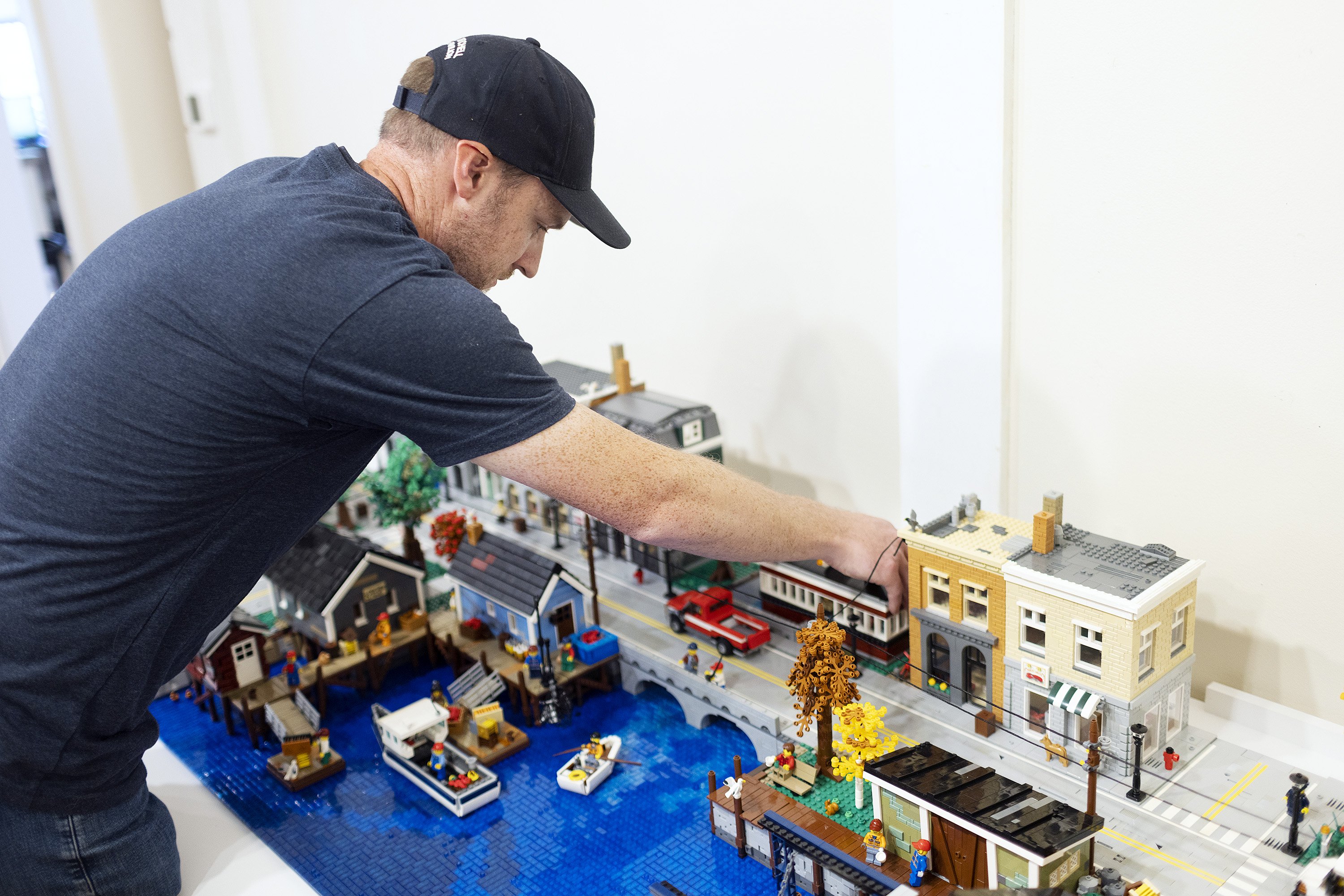 Adolphsen posts photos and details of his creations on his website, colbyadolphsen.com. His harbor town, for instance, took about 160 to 170 hours to build over three months. The Lego buildings include a church, a dry dock, boat shed, hardware store, barber shop, grocery store, office building, seafood market and diner.