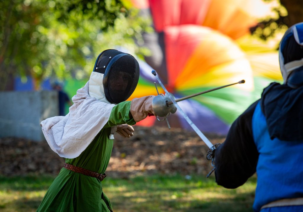 Balloons lift off Saturday morning at Simard-Payne Memorial Park during the Lewiston-Auburn Balloon Festival. (Russ Dillingham/Staff Photographer) Balloons lift off Saturday morning at Simard-Payne Memorial Park during the Lewiston-Auburn Balloon Festival. (Russ Dillingham/Staff Photographer) Balloons lift off Saturday morning. (Russ Dillingham/Staff Photographer) Balloons lift off Saturday morning. (Russ Dillingham/Staff Photographer) The parade travels down Lincoln Street in Lewiston Saturday morning after starting in Auburn. (Russ Dillingham/Staff Photographer) The parade travels down Lincoln Street in Lewiston. (Russ Dillingham/Staff Photographer) The festival parade travels down Lincoln Street in Lewiston Saturday morning after starting in Auburn. (Russ Dillingham/Staff Photographer) The parade travels down Lincoln Street in Lewiston. (Russ Dillingham/Staff Photographer) August Butcher fences an opponent as part of the Society For Creative Anachronism’s performances at Simard-Payne Memorial Park during the Lewiston-Auburn Balloon Festival. The evening hot air balloon launch was cancelled due to windy conditions. (Libby Kamrowski Kenny/Staff Photographer) Raelynn Newcomb, 3, tumbles around a partially inflated hot air balloon by Damn Yankee Balloons at Simard-Payne Memorial Park on Saturday afternoon. Raelynn, who is a twin, ventured around the billowing balloon while her sister preferred the safety of mom’s arms for the majority of the time. (Libby Kamrowski Kenny/Staff Photographer) Lillyana Brailey, 5, gets a butterfly facepainting design by Sasha Michaud of BC Love Creations at Simard-Payne Memorial Park on Saturday during the Lewiston-Auburn Balloon Festival.. By the time the final glitter coating was applied, Michaud’s booth had a line of families with kids wanting their own faces painted. (Libby Kamrowski Kenny/Staff Photographer)