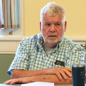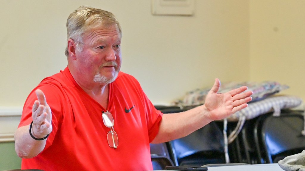 Selectman Steve McGee speaks Thursday during a West Gardiner selectmen’s meeting at Auxiliary Hall in West Gardiner. (Joe Phelan/Staff Photographer)
