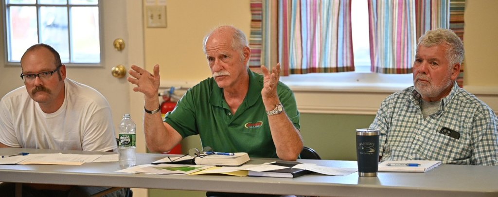 Greg Couture, center, speaks Thursday during a West Gardiner selectmen’s meeting at Auxiliary Hall in West Gardiner. (Joe Phelan/Staff Photographer)