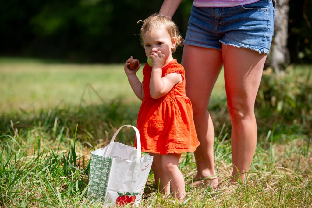 Across the orchard, families weaved in and out of rows of apple trees, carefully reaching for the perfect apples. Munching on a freshly picked apple, Kacey Stewart spoke about her family’s plans to make apple cider with their bushels.