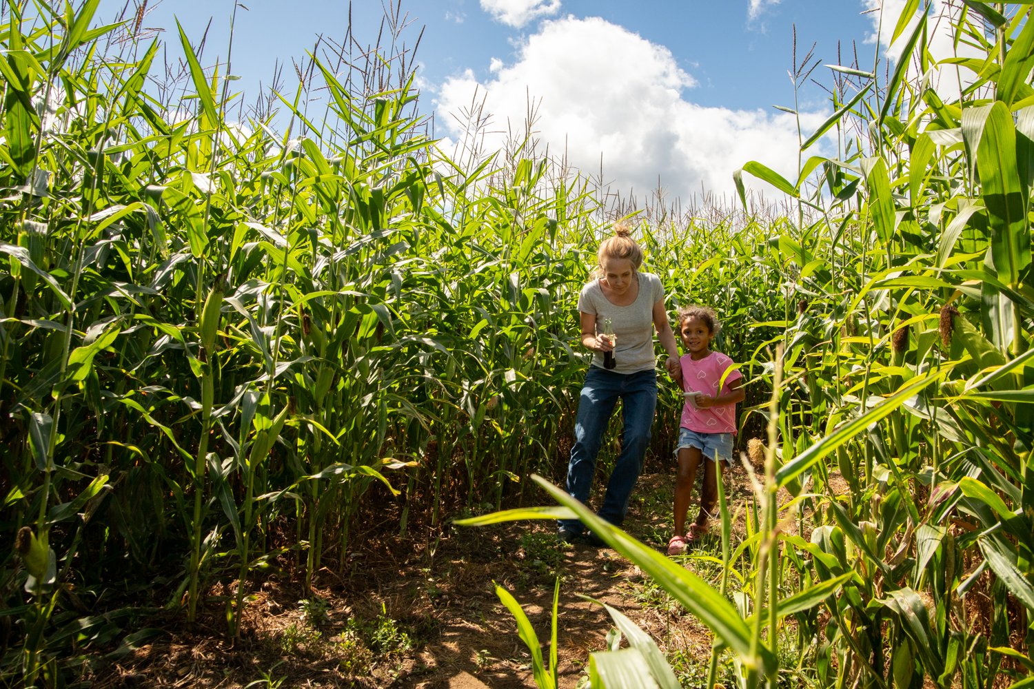 Jenna and 5-year-old Stella navigate the corn maze at Royal River Orchards in New Gloucester on Saturday. The family-owned farm and its attractions are open Saturdays and Sundays through mid-October this season. It is located at 201 Peacock Hill Road. (Libby Kamrowski Kenny/Staff Photographer)