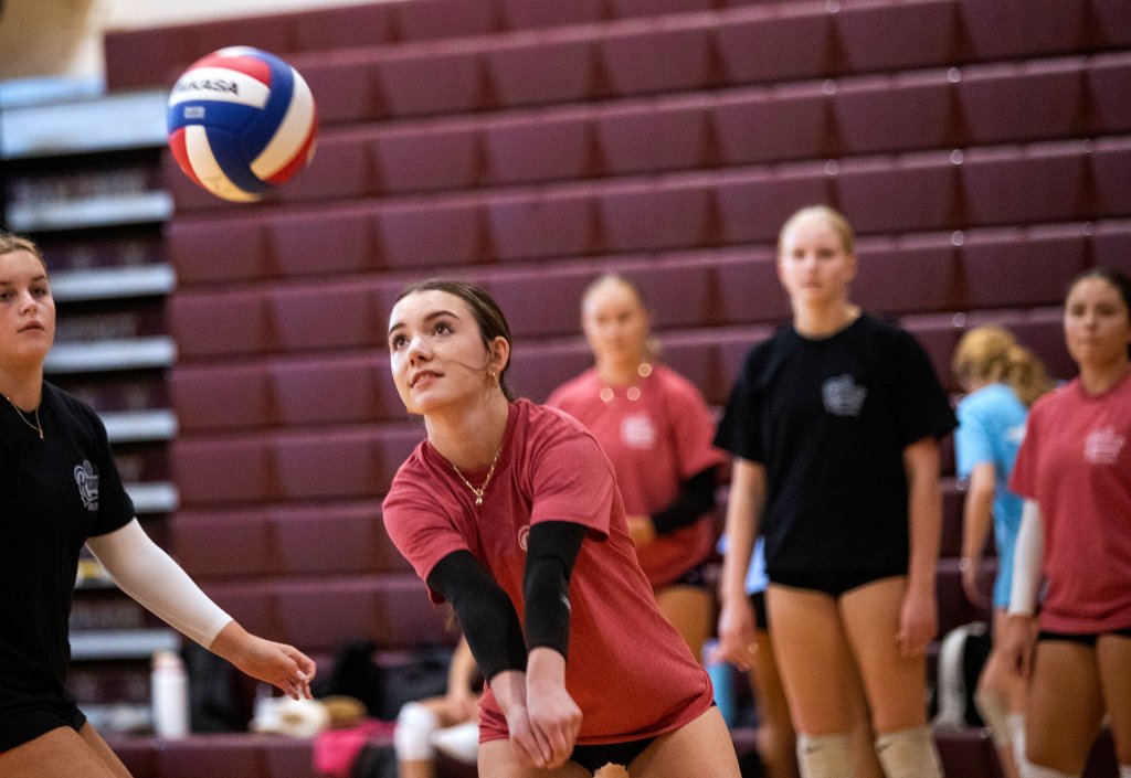 In downeast Maine, Washington Academy is the reigning Class B champion. Head coach Corey Schwinn, who is entering his 11th season, has won three state titles in five years. He said about 40 of the school’s 300 students try out for the team. Twelve make the team and one is designated a libero.