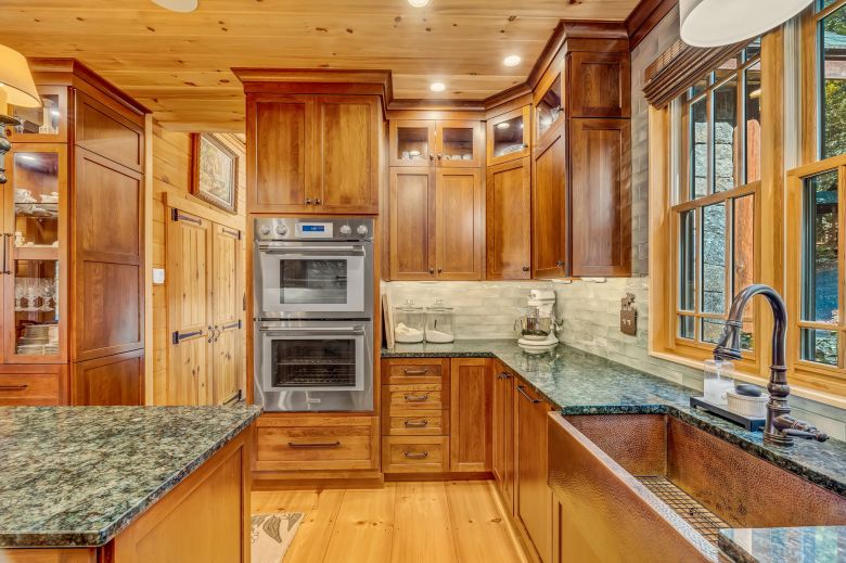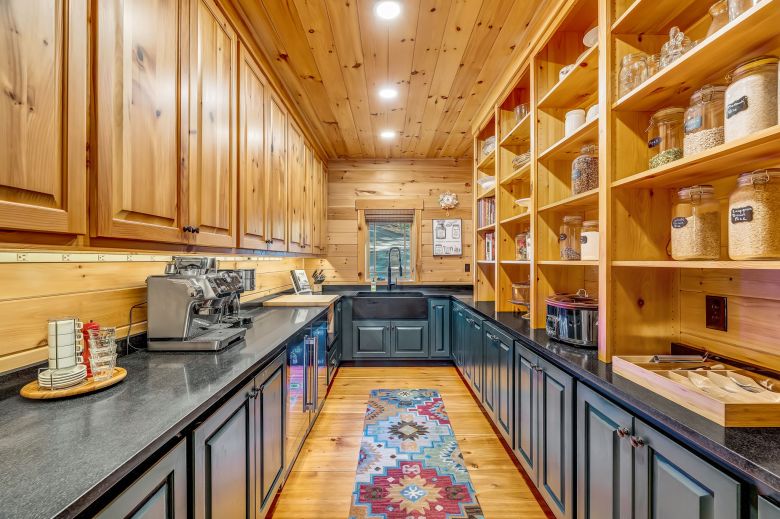 The designer kitchen was just completed, and includes beautiful granite countertops, a tiled backsplash, high-end Thermador stainless steel appliances, custom cherry cabinetry, stately lighting and an impressive 8-foot by 16-foot butler’s pantry with sink, wine fridge and ample storage. An adjacent dining area makes for perfect entertaining.