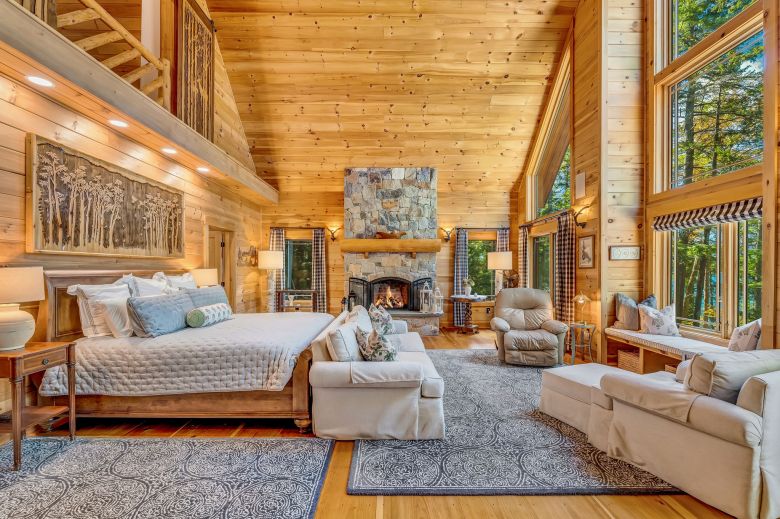 • Magnificent, Adirondack-style estate has western sunset views and 257-feet of deepwater lakefront on Long Pond