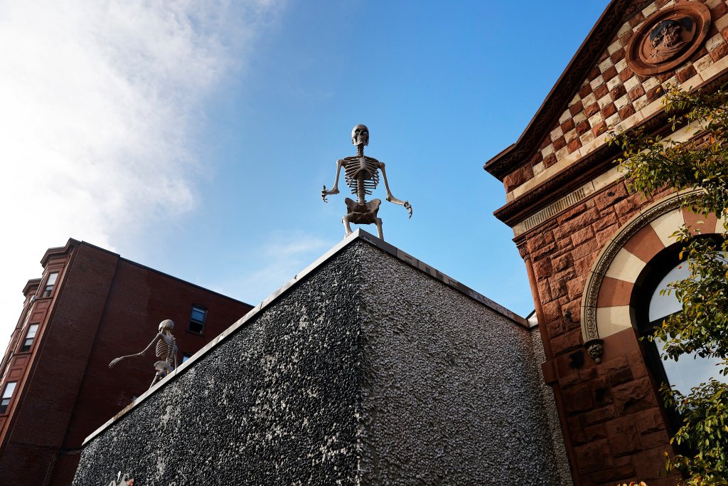 The Morses don’t leave their skeleton up all year. When putting it up in the fall, Pete Morse, a musician and audio engineer, usually has to enlist several neighborhood kids to help, holding the ladder and the various body parts in place until the assembly is complete.