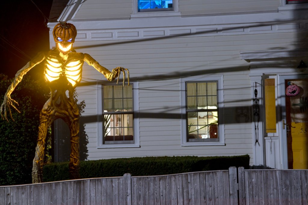 Curry says her 10-foot skeleton is too big to be stored in or around her Cape Cod-style home, so she leaves it up all year, but positions it among some bushes and slightly out of sight. She has another 10 or so smaller skeletons, 3 to 7 feet tall, that she takes apart or folds and stores in large plastic bins in the backyard.