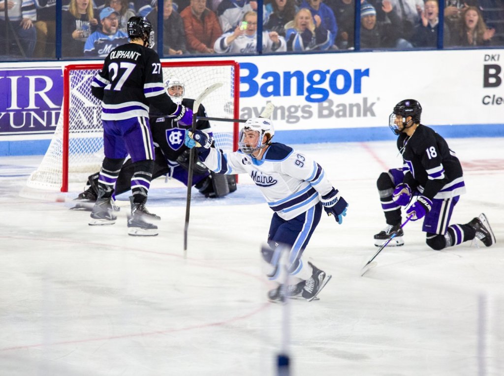 Playing in his first collegiate hockey game, a 5-2 Maine win over Holy Cross, Poirier showed the offensive skill that made him a fifth-round pick of the Carolina Hurricanes in the 2024 NHL draft. Poirier recorded a hat trick, and also played with a little grit, acknowledging that to take his game to the next level, mentally and literally, he has to become a better two-way player.