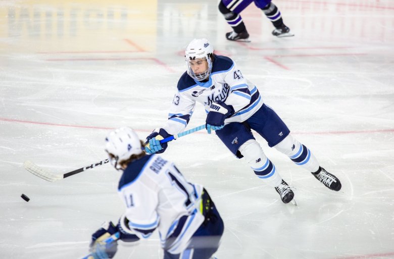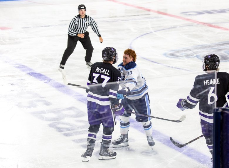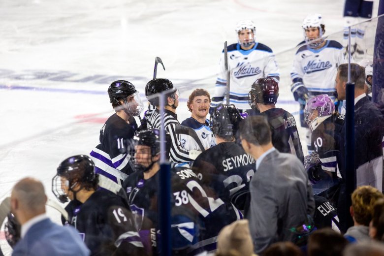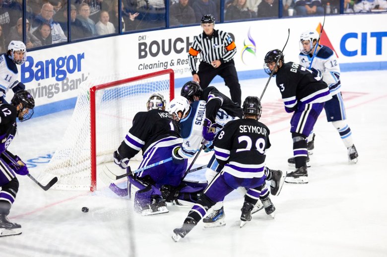 Playing in his first collegiate hockey game, a 5-2 Maine win over Holy Cross, Poirier showed the offensive skill that made him a fifth-round pick of the Carolina Hurricanes in the 2024 NHL draft. Poirier recorded a hat trick, and also played with a little grit, acknowledging that to take his game to the next level, mentally and literally, he has to become a better two-way player.