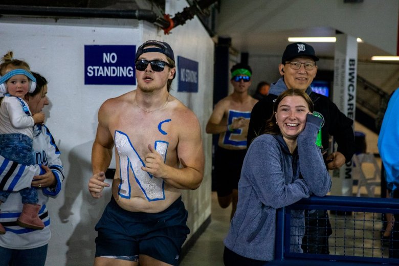 Poirier’s third goal, the one that sent hats raining onto the ice, was another one-timer, this one off a Max Scott pass at 3:43 of the third. He said he studies video of NHL players with shots he admires, like Cole Caulfield of the Montreal Canadiens. More importantly, Poirier knew he had to keep his feet moving to create the space needed for his dangerous shot.