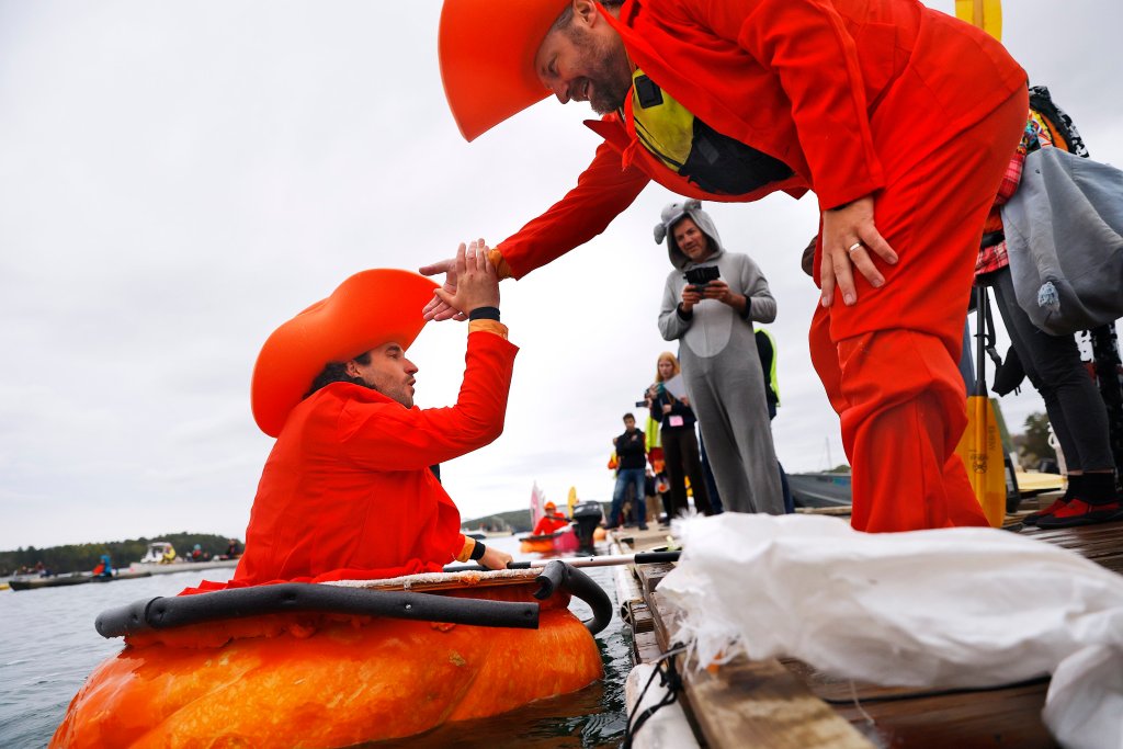 Not all pumpkin boats needed a competitor’s shove to be out of the running, with some riders flipping out almost immediately after launching. Rescue divers were at the ready to help them back to the dock.