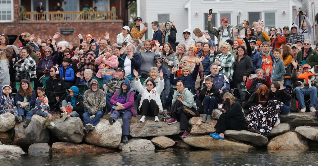 Bean Andrenyak said the event isn’t just fun for the racers, but the spectators as well. Several hundred people crowded the launch area to get a view of the race, many donning pumpkin hats to match the weekend’s festivities.