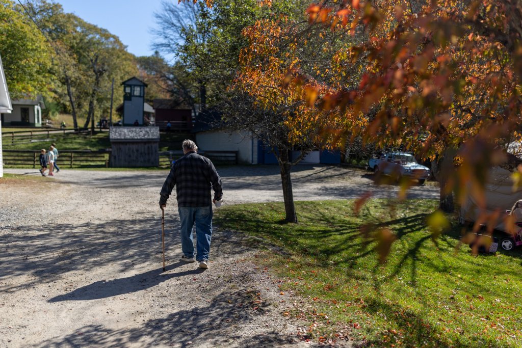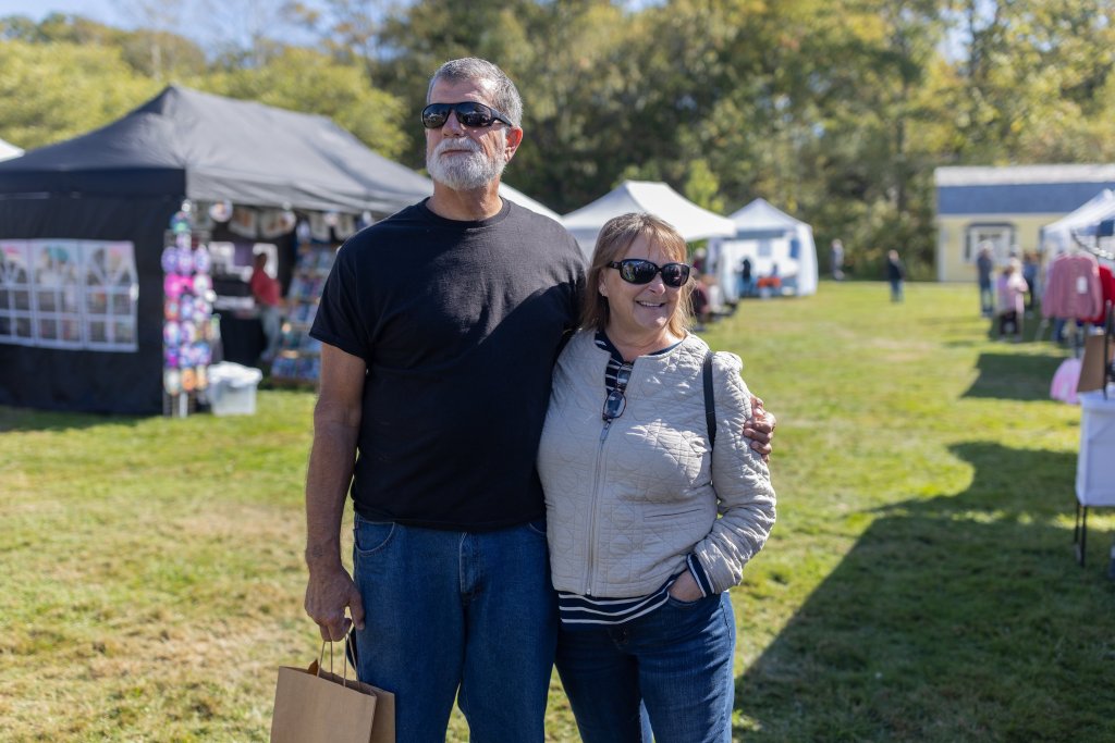 Paula and Anthony Wood who were visiting from their home in Missouri at the Fall Foliage Festival at the Boothbay Railway Village Museum on Saturday, October 11, 2025. The couple said they were slightly disappointed and surprised by the lack of fall foliage. (Brianna Soukup/Staff Photographer)