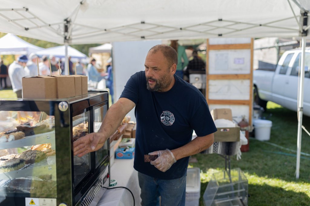 Jay Hopkins from Wildwoods Bakery in Nobleboro sells pastries at the Fall Foliage Festival at the Boothbay Railway Village Museum on Saturday, October 11, 2025. (Brianna Soukup/Staff Photographer)