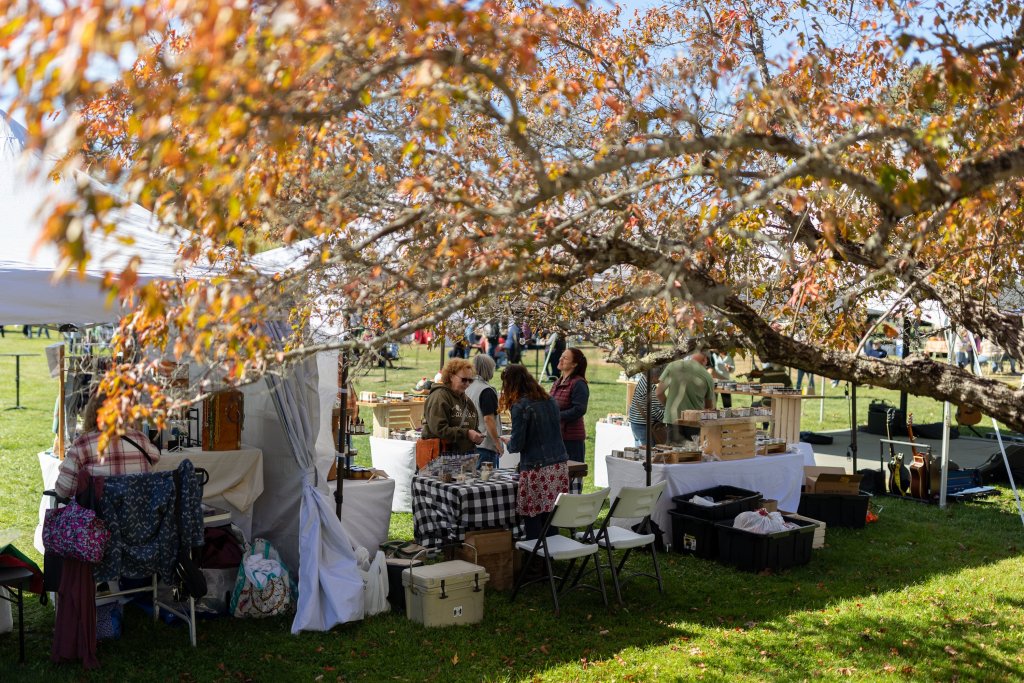 Customers shop at the various vendors at the Fall Foliage Festival at the Boothbay Railway Village Museum on Saturday, October 11, 2025. (Brianna Soukup/Staff Photographer)