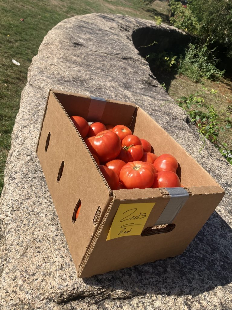 On Saturday, Sept. 27, I handed over just $25 to the nice lady at the booth at the Snell Family Farm of Buxton, and I lugged a box home. She guesstimated its weight at 25 pounds (I think it was more). Bear in mind, tomatoes are selling for as much as $5.99 per pound at the farmers market, meaning at full price, I could have paid as much as $150.