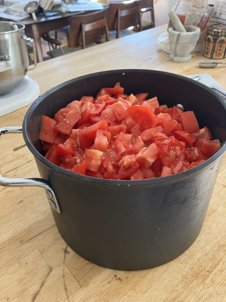 7 to 8 cups chopped, fresh tomatoes, peeled, seeds removed, “tomato water” saved