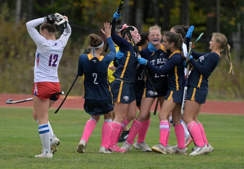 Messalonskee had an opportunity to tie it when it was awarded a penalty corner just before time expired. The resulting shot went inches wide, leading Mt. Blue players to mob goalie Gwen Lesperance in celebration.