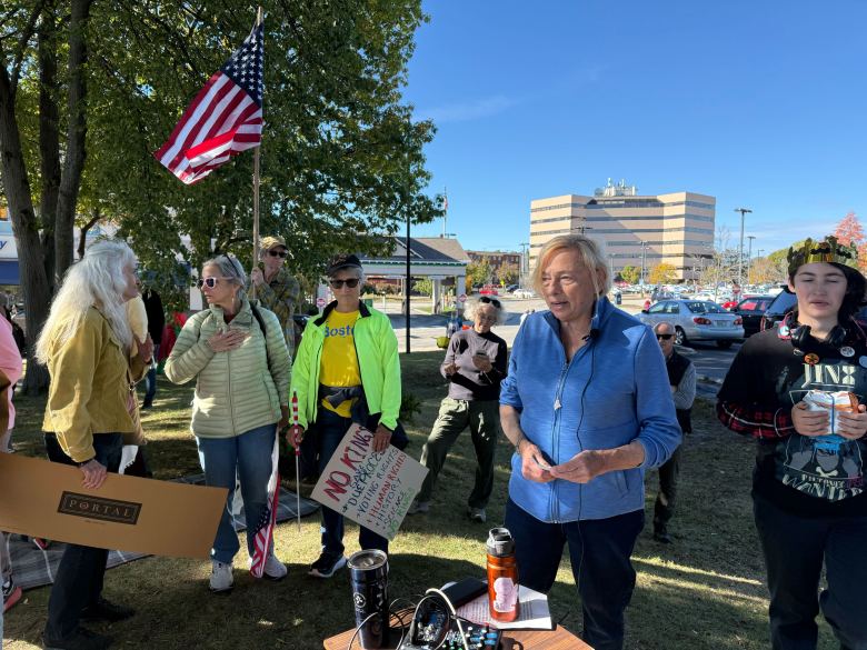 It was Shannon Pyne’s birthday on Saturday, but that didn’t stop her from showing up to the Portland “No Kings” protest that afternoon. Pyne, a Portland resident, said she “shouldn’t have to be” at the protest on her birthday.