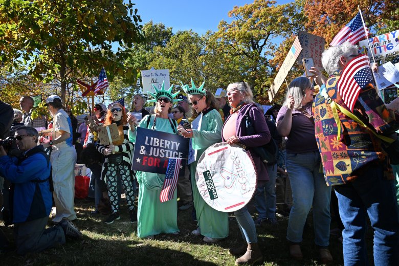 The protests built off similar demonstrations held in June that coincided with a military parade through Washington, D.C., and President Donald Trump’s 79th birthday.