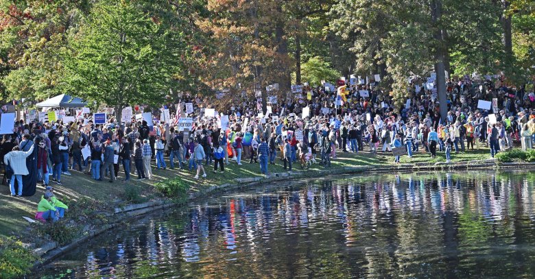 Thousands of Mainers gathered in towns and cities across the state Saturday to protest Trump administration actions and policies that organizers said threaten democracy.
