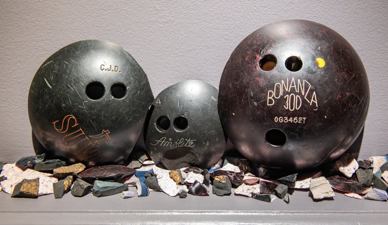 Lewiston’s Maine MILL — Museum of Innovation, Learning and Labor — has collected roughly 2,000 items from both sites where 18 people lost their lives, according to Maine MILL Executive Director Rachel Ferrante. Pieces in the collection were either left outside the buildings or were items discarded by the businesses. The bowling and billiard balls were among those items collected.