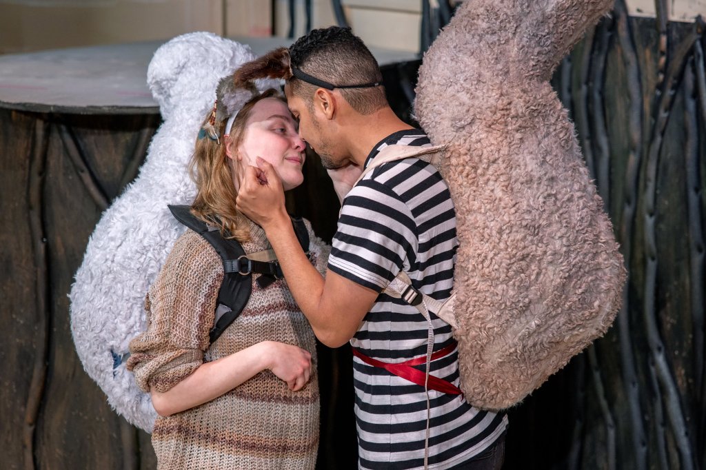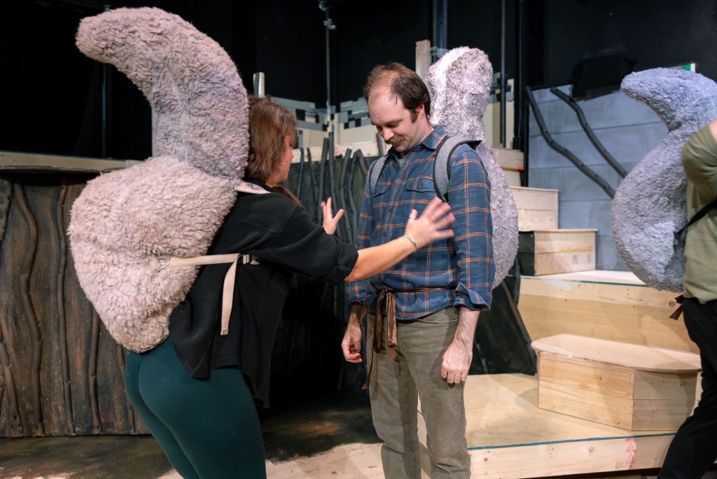 In this particular scene of Robert Askins’ play “The Squirrels,” Harmon is trying to seduce another squirrel, in ways that might not make sense for humans. She’d already rehearsed tickling his ribs.