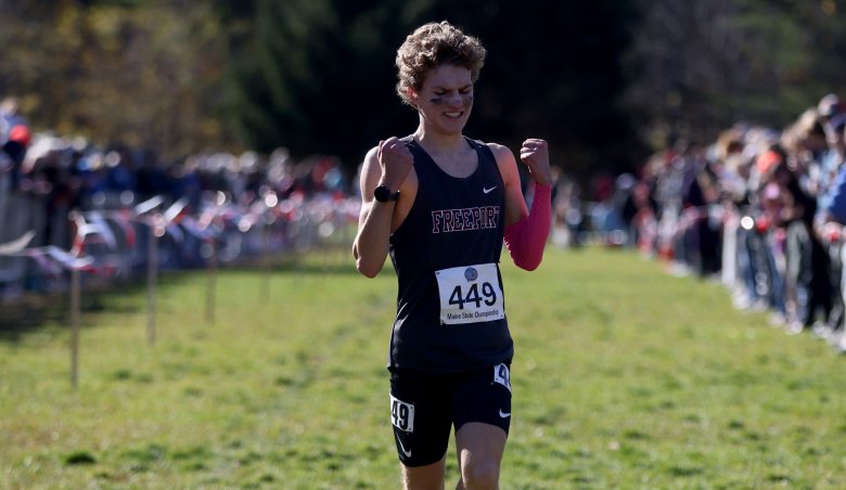 Yarmouth (38 points) snapped Freeport’s four-year streak as team champion, led by Jackie Chalmers (17:04.15), who finished third. Bowen Mitchell (17:26.22) was sixth, while Eli Chalmers (17:40.90) was ninth.