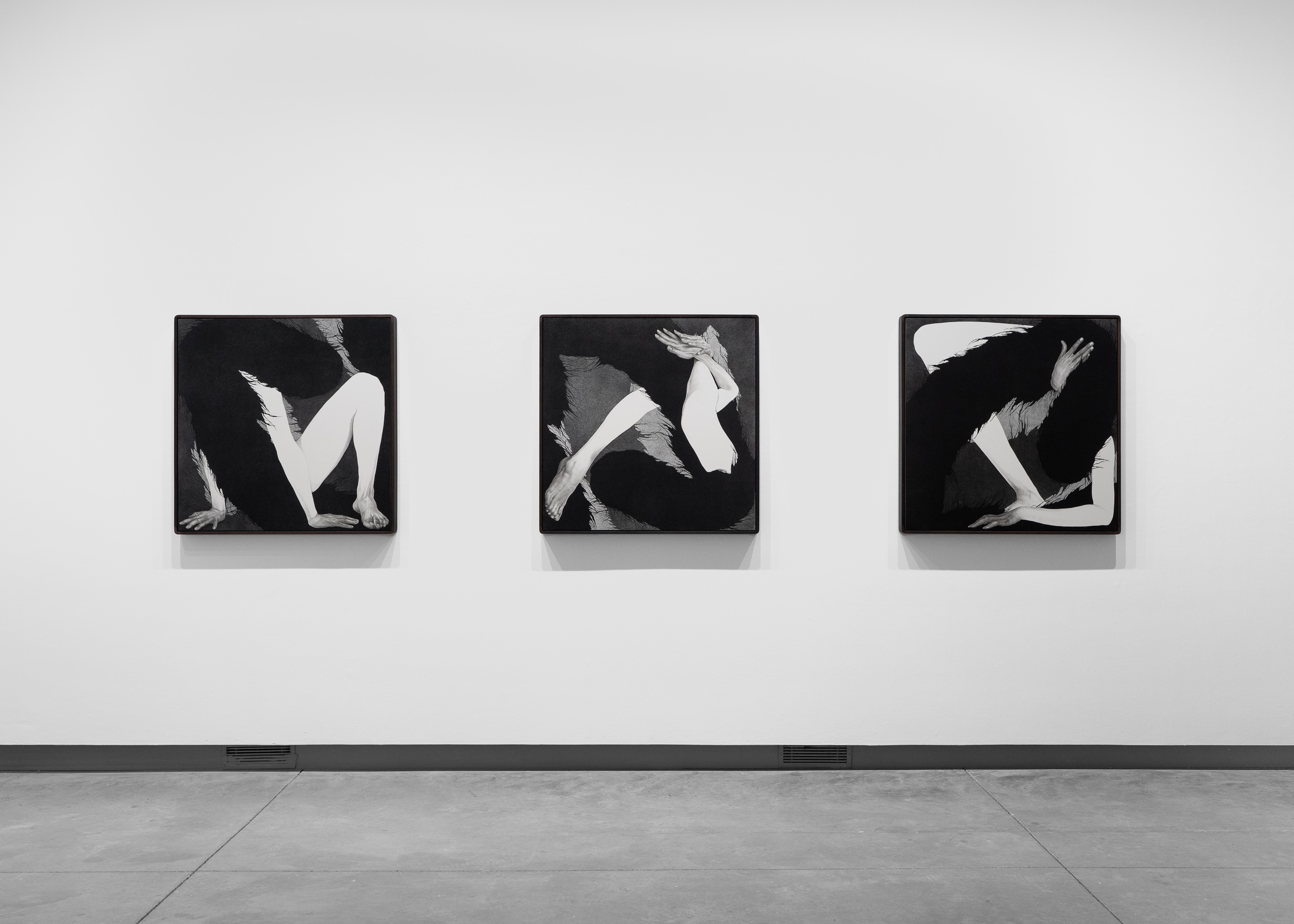 In the West, serpent women are considered evil. But Wall uses them as symbols of feminine power. From a purely visual perspective, however, the mix of flat areas of ink and conté with meticulously drafted hands and feet also seem to unify artistic forms of both East (flat perspective, use of ink washes, minimalist form) and West (extremities depicted with the rigor and sensuality of Dürer or Renaissance painting).