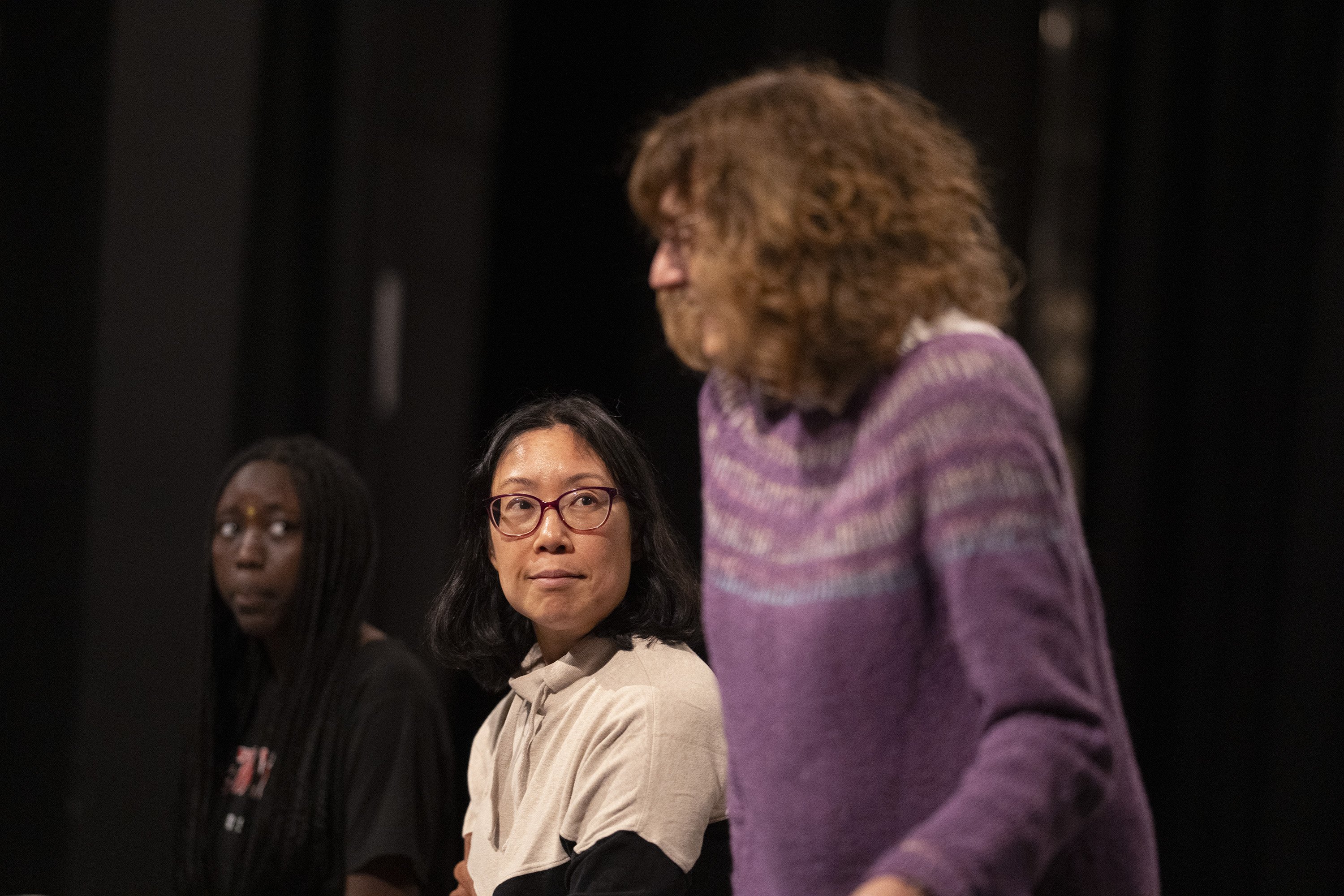 Michelle Tham looks to director Carol Tanzman during a rehearsal of Gospel Messiah: A Refugee Oratorio at The Hill Arts in Portland on Nov. 1. (Gregory Rec/Staff Photographer)