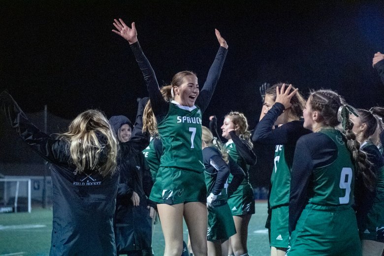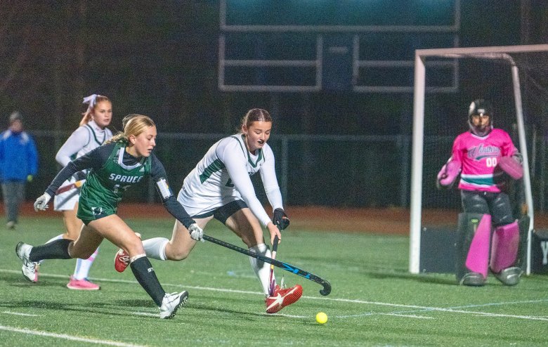 Davis got her chance to make it happen in the second quarter. With 11:56 to go on Spruce’s first corner of the game, sophomore Aisla Armandi smacked a hard shot that Davis, a senior, was in perfect position to tip home.