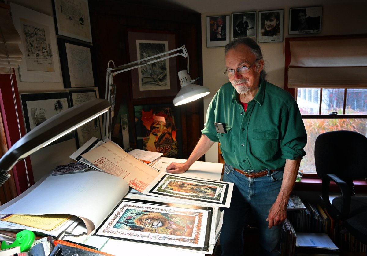 After earning his BFA in illustration in 1974, he moved to the Boston area. As a freelance artist, he worked for the Boston Globe, Boston Magazine and New England Monthly magazine, among others, while also working on advertisements and book illustrations. He’s done illustrations for seven of Maguire’s novels, including the four in the “Wicked Years” series. He also did 11 covers for editions of C.S. Forester’s “Hornblower” series.